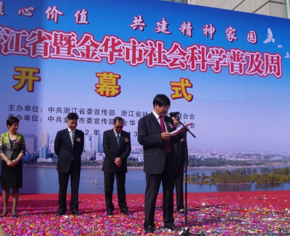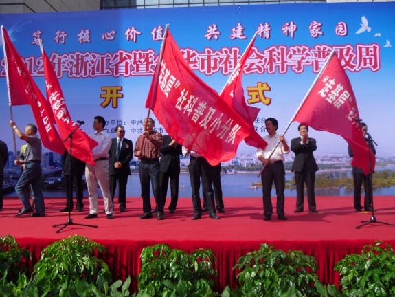 10月13日上午,2012社科普及周活动开幕式在金华举行,这标志着全省第十一届社会科学普及周活动正式拉开序幕。“社科普及周”是由中共浙江省委宣传部和浙江省社科联联合主办的大型群众性社会科学普及活动,活动于每年的10月至11月间在省内各地举行,致力于弘扬科学精神,培育人文精神,传播科学思想,普及哲学社会科学知识,提升群众的思想道德水平和科学文化素养。自2002年以来,已成功举办了十届,深受社会各界和广大群众的欢迎。