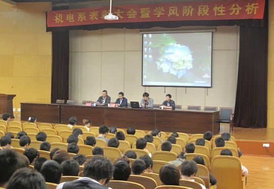 5月23日,机电系10级年级大会暨期中学风阶段性分析会在校温州厅隆重举行。系主任郁军、党总支副书记朱程出席大会并为在开学以来综合表现突出的集体和个人颁奖。大会由系辅导员楼竹夷主持。