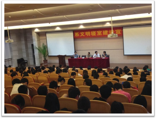 为进一步贯彻上级教育部门有关文明寝室建设的文件精神,做实建工系文明寝室建设工作,建工系于9月17日晚6点时分在教科大楼报告厅召开了全系文明寝室建设宣讲推进会。出席会议的有系主任蔡敏,党总支副书记徐国梁,系学工办辅导员张继鹏;系公寓自管会委员,各班级团支书、班长、生活委员,各寝室长;会议由系学工办主任王望峥主持。
