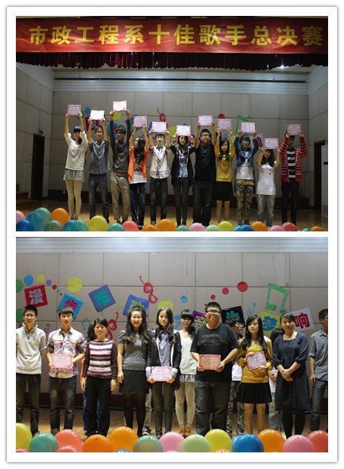 经过工作人员严格的统计总分,本次比赛产生了十名市政系十佳歌手。最终给水12-1的许佳佳同学以一首惊艳全场的《记得》获得了本次比赛的冠军,给水12-1任东来、市政12-1车炜达分获亚军和季军。道桥12-1朱钰敏一曲凭借《一个像夏天一个像秋天》获得最佳人气奖。