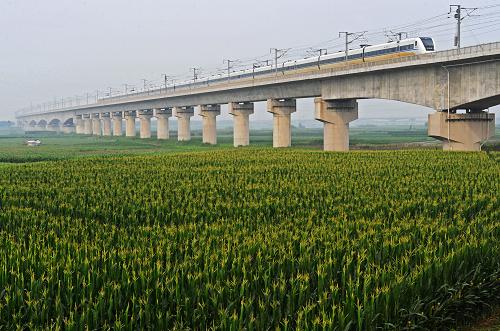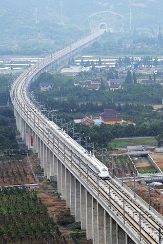 6月29日,一列从南京驶往宁波的高铁试验车行驶在宁杭甬高铁曹娥江特大桥上。新华社记者谭进摄