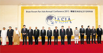 2015年博鳌亚洲论坛年会3月26日至29日举行,主题是“亚洲新未来:迈向命运共同体”。来自五大洲国家和地区领导人、国际组织负责人以及政界、工商界人士、专家学者2000多人参加。