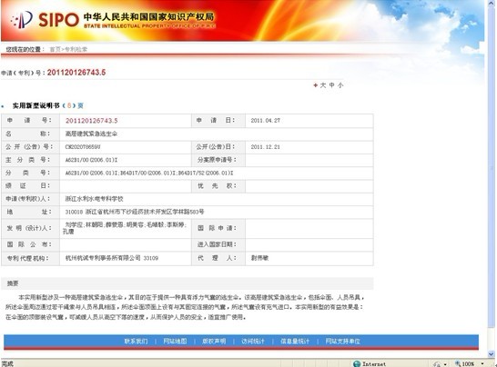 据国家知识产权局的权威信息发布,永利发明者协会林朝阳、薛蒙恩、胡美容、毛晴毅、李斯婷等同学在刘学应教授、蔡敏教授等的指导下顺利完成了“高层建筑紧急逃生伞”创新项目。该项目是学校的挑战杯项目,其知识产权已获得了国家知识产权局的专利授权保护,在此对校发明者协会及发明同学表示祝贺。
