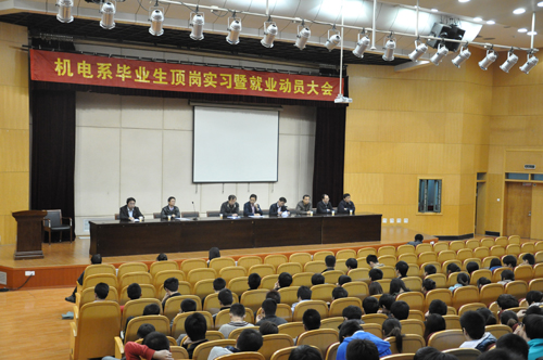11月10日下午,机电系在温州厅召开了2012届毕业生毕业顶岗实习暨就业动员大会。系党总支书记朱程、副主任李增芳、各专业教研室主任、负责就业工作的辅导员和部分毕业指导老师参加了大会。