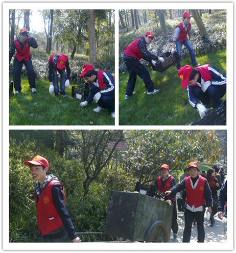 志愿者们当天早早地来到太子湾公园,换上统一的志愿者服装,男女分工,男生拿起扫把和畚斗,将公园的落叶、杂草和白色垃圾利索地清理干净,并将垃圾集中处理。女生则对游客进行不文明行为劝导、义务引导分发宣传资料等。“志愿太子湾、博爱雷锋行”的宣传口号为志愿服务活动增添一抹亮色。游客们看到这么一群新时代的“活雷锋”,都纷纷竖起了大拇指。虽然一天的志愿服务让同学们都疲惫不已,但志愿者们纷纷表示:我们的时代在呼唤雷锋精神,我们的社会需要雷锋精神,累点苦点不要紧,我们要通过自己的行动来发扬雷锋精神和志愿者精神。
