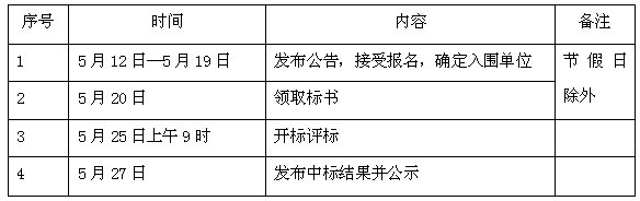 五、招标响应文件递交截止时间和地点:2011年5月25日上午9时递交截止,招标响应文件需在招标当天在规定时间内交到开标地点。