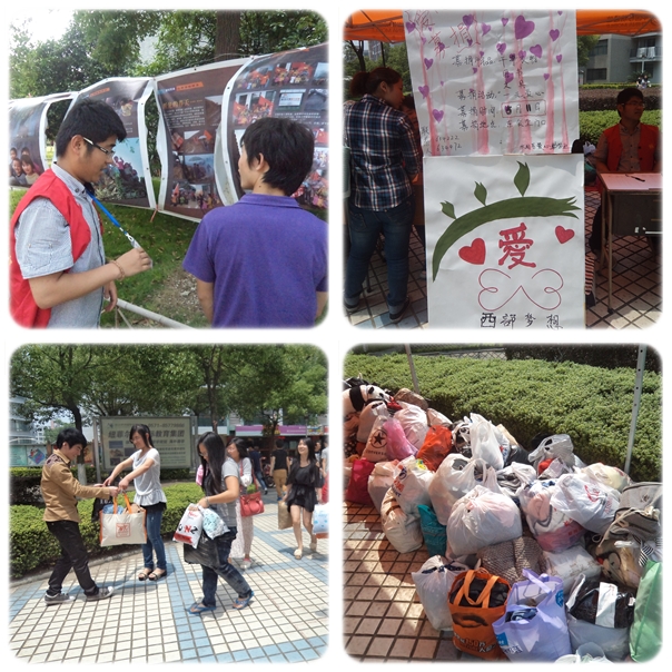 5月11日中午,水利系西部梦想爱心助学社在东餐厅门口举行了爱心募捐活动。水利系西部梦想爱心助学社从2010年至今已经4次前往甘肃会宁老君坡乡,为当地小学捐赠了不少的学习用品及衣物。此次校内活动的主要内容是接受同学们捐赠的衣物、文具、书籍等物品,用于对我国西部贫困学生的援助。此外,现场还开设了“壹基金”的站点,“壹”块钱,“壹”份爱心,“壹”片希望。现场悬挂的海报上孩子们那渴望知识的眼神和极具震撼力的标语,吸引着众多老师与同学们的参加,积极献出自己的爱心,捐赠衣物的同学接连不断。捐赠所得的财物将由爱心助学社代收,届时将寄望西部那些有需要的孩子们手中。