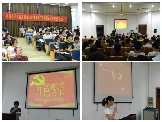 6月1日,机电系2010-2011学年第二学期团日活动评比暨成果展示活动在实南102学术报告厅成功举办。本次评比针对机电系各基层团支部 “礼献九十周年、祖国在我心中”主题团日活动的开展情况展开。