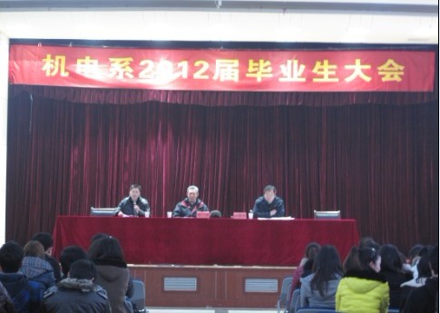机电系利用09级学生新学期开学返校一周的机会,于2012年2月14日召开机电系2012届毕业生大会。系主任郁军、副主任李增芳、各专业毕业指导老师和负责就业工作的辅导员参加了大会。