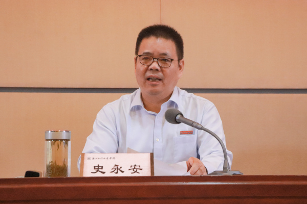 史永安围绕习近平总书记在教育文化卫生体育领域专家代表座谈会上的重要讲话精神,就学校落实立德树人根本任务,提出了要求:一要加强教师队伍建设,坚持立德树人初心使命。要强调师德师风建设,增加教学精力投入,注重教师队伍的培养。二要推动课程思政改革,落实立德树人根本任务。要充分发挥思政课程的引领作用,办好思政课程;不断拓展通识课程的思政内涵,完善“课程思政”体系建设;深刻挖掘专业课程的思政元素,达到“以文化人、以文育人”的隐性“课程思政”目的。三要坚持党的全面领导,形成立德树人强大合力。要抓好“根本点”,始终把政治建设摆在首位,确保学校成为坚持党的领导的坚强阵地;举好“党建旗”,有效提供基层组织保障,发挥党组织在学校改革发展建设中“压舱石”的积极作用;营造“好氛围”,经费投入向教学倾斜,合力确保教学中心地位,形成立德树人强大合力,培养担当民族复兴大任的时代新人。