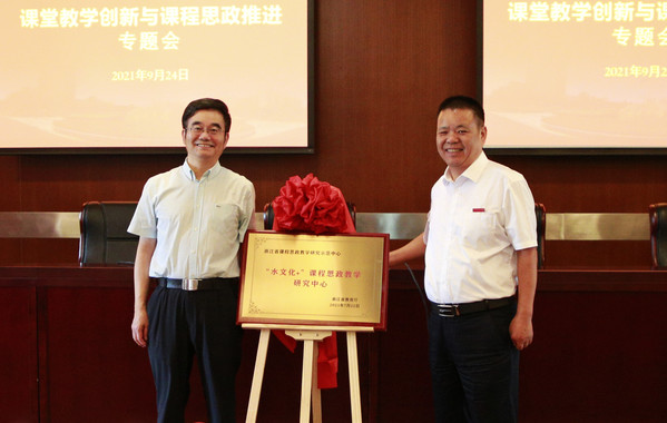 党委书记史永安和徐金寿共同为学校“水文化+”课程思政教学研究中心立项“省级课程思政教学示范研究中心”建设揭牌。