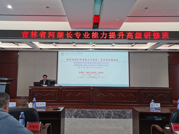 徐金寿出席吉林省河湖长专业能力提升高级研修班开班仪式,并作题为《提升河湖长沟通能力与素质,为美丽河湖赋能》的专题讲座。他从掌握“新四会”、采用“四种思维”、具备“三个硬核”等方面,结合当前河湖长制的政策、制度与工作要求,详细介绍了如何有效提升河湖长沟通能力与素质,推动河湖长制从“有名有责”到“有能有效”,且创新了在非学历教育中融入课程思政。讲座内容引起了强烈反响,得到参训干部学员一致好评。