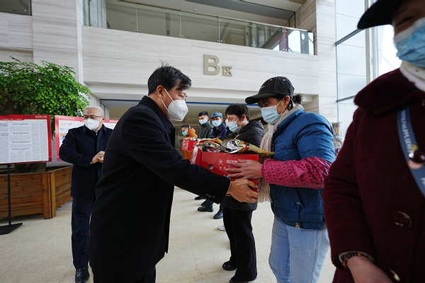 1月16日上午,校党委书记钱天国、校长陈光亭带队走访慰问寒假在岗的一线教职员工和留校学生。校党委副书记吴小英、副校长姜翰照,办公室、校工会、宣传部、保卫处、总务处(后勤服务中心)、学工部、建工学院等部门和学院负责人分别陪同。