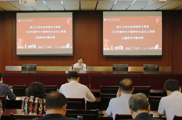 陈光亭强调,党员干部要以开展主题教育为契机,深刻领会习近平新时代中国特色社会主义思想的科学内涵、精神实质、实践要求,运用习近平新时代中国特色社会主义思想的世界观和方法论指导工作,破解难题,推动学校高质量有特色发展。一要牢固树立以师生发展为中心的理念。毫不动摇坚持“发展才是硬道理”,准确把握学校发展与师生发展的关系,坚持发展以总体最优为目标,以扎实举措推动学校与师生共同发展。二要树立发展信心,坚持自信自立。正确认识学校发展面临的机遇和挑战,认清学校发展趋势,增强自立精神和奋斗精神,树立发展信心,展现水院师生良好精神风貌。三要坚持守正创新、求实进取。坚持社会主义办学方向,坚持落实立德树人根本任务,坚持尊重高等教育办学规律,坚持应用型办学定位,在学校治理、办学路径、培养模式、教学改革、人事管理、人才引育等方面不断创新,通过学习提升内在,通过争取聚集资源,以改革为动力推动发展,不断提升办学水平。四要坚持问题导向,强化责任担当。从学校实际、发展需要和时代需求出发,找到制约学校发展的“卡点”和“瓶颈”问题。敢于直面学校面临的困难和问题,以敢担当、真担当的决心意志和出实招、求实效的能力本领解决实际问题,打开工作局面,推动学校发展。五要坚持系统观念,强化统筹思维。把握好全局和局部、当前和长远、宏观和微观、主要矛盾和次要矛盾、特殊和一般的关系,加强前瞻性思考、全局性谋划、整体性推进,系统谋划推进学校各项工作的开展,努力实现发展质量、结构、规模、速度、效益、安全相统一。六要坚持胸怀天下、开放办学。增强开放包容意识,积极对接行业需求,服务地方经济社会发展,坚持国际化办学,不断吸纳社会资源,以世界的眼光、海纳百川的胸怀,推进学校高质量有特色发展。
