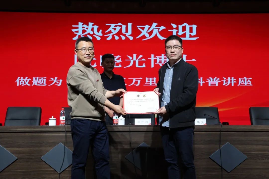 近日,测市学院阮晓光博士受聘为镇海中学南浔分校科学副校长,并为学校学生作题为《南海三万里》主题科普讲座。