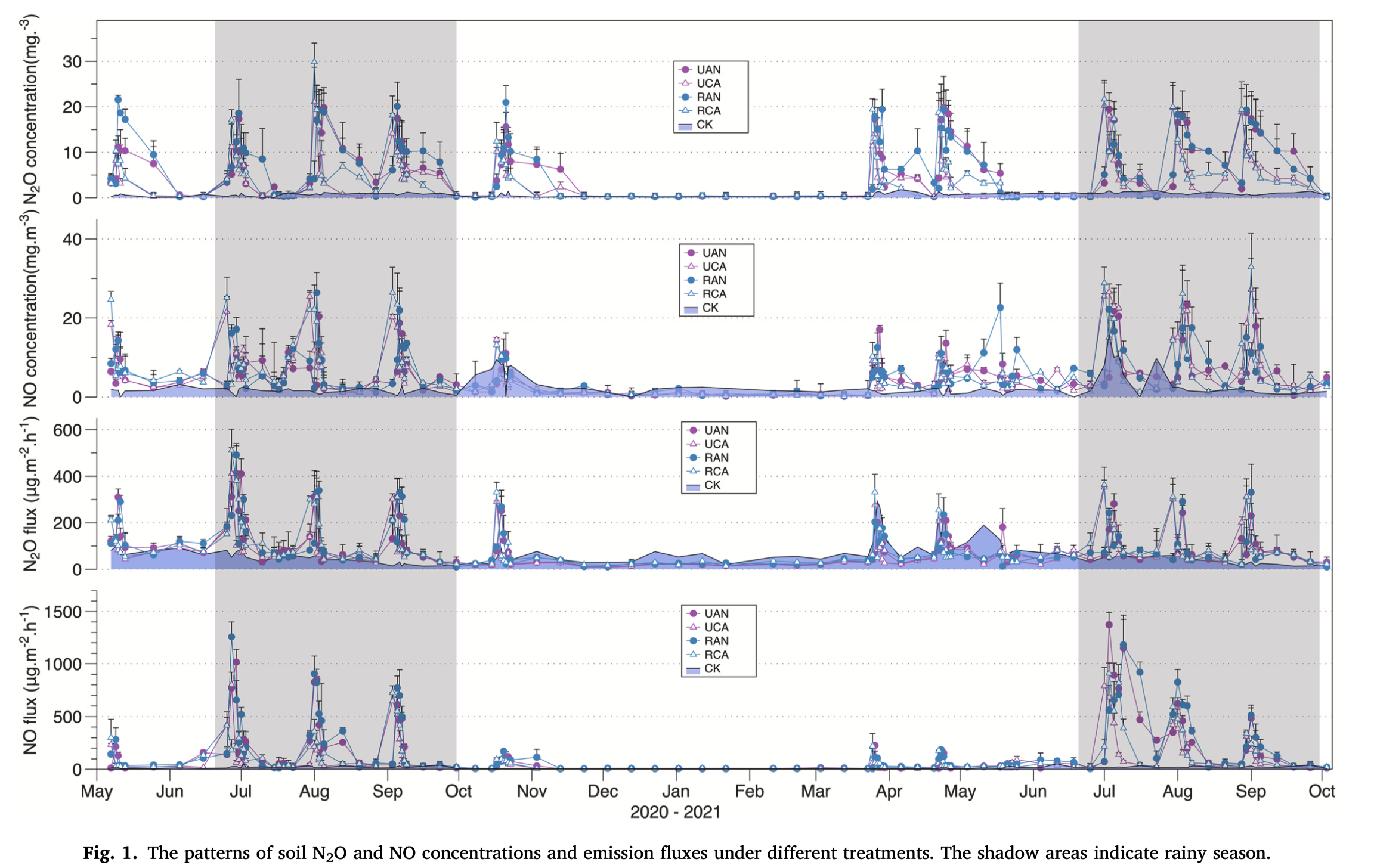 水环学院迟雁冰老师作为第一作者,在《Agricultural Water Management》发表了《Potential risk of soil reactive gaseous nitrogen emissions under reclaimed water irrigation in a wheat-maize rotation system》。文章以再生水灌溉缓解农业水资源短缺为应用背景,旨在探究再生水灌溉对土壤活性氮类气体(Nr)(氨(NH3)、一氧化氮(NO)和氧化亚氮(N2O))排放的影响,通过深入分析再生水灌溉对这些关键气体排放的作用,以优化其在实际应用中的环境效益。研究聚焦华北区域夏玉米-冬小麦轮作体系,通过为期两年的大田试验,对关键农业活动期间(耕种、灌溉、施肥和收获)的土壤剖面(0-30 cm)中的N2O和NO浓度、土壤Nr排放通量、土壤理化性质、土壤微生物和作物吸收的氮素等指标进行了监测与深入分析,以探讨再生水灌溉对土壤中氮类活性气体浓度及排放的影响。研究发现,相较于地下水灌溉,再生水灌溉虽能有效降低土壤NH3的排放,但却导致土壤中的NO和N2O浓度增加。研究还指出,再生水灌溉增加了土壤中反硝化(nirK、nirS、nosZ)及氨氧化古菌(AOA-amoA)基因的丰度,暗示了N2O和NO排放可能增加的风险。且通过试验发现,土壤中Nr排放和浓度更多地受到氮肥类型的影响,而不是水质,并认为在再生水灌溉的农田中有效增加硝态氮含量能有效减少N2O和NO的排放。研究强调了灌溉实践、肥料类型与土壤Nr排放之间相互作用的复杂性,指出需要制定针对性的管理策略,以减轻再生水灌溉和氮肥使用在农业中可能带来的环境风险。该研究得到了国家重点研发项目和南浔青年学者项目的支持。