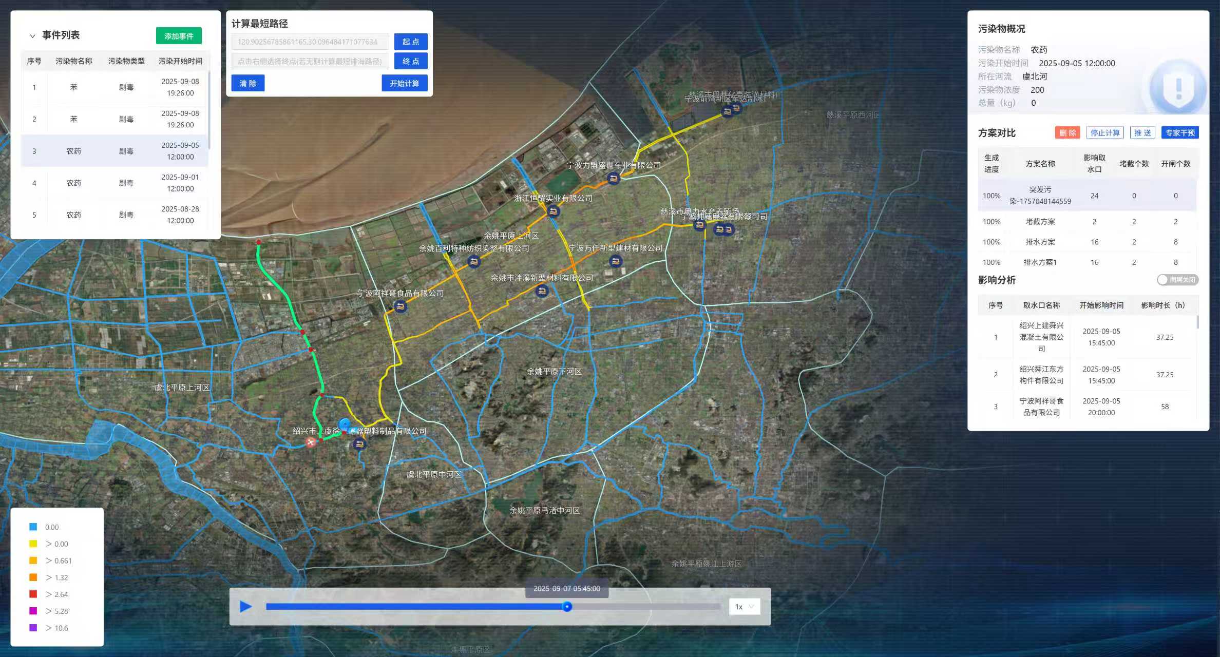 浙东水网数字孪生项目,由永利智慧水利研究所与浙江省水利河口研究院协同开发,其核心亮点是“水污染扩散模拟与应急调度一体化模型”。针对浙东平原河网治污难题,该模型针对这一痛点,可快速模拟不同污染类型、污染强度下的污染物扩散轨迹与影响范围,结合水网闸站布局,逆向推演最优截污、导污方案。从污染预警、轨迹模拟,到调度优化、效果评估,模型实现了突发水污染应急处置的“全流程闭环”。