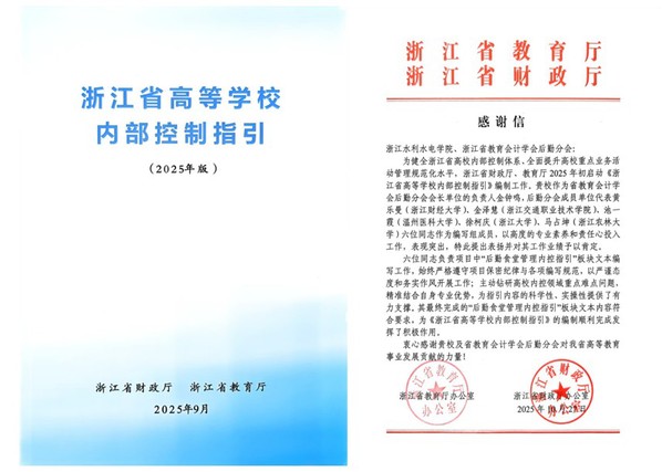 近日,《浙江省高等学校内部控制指引(2025年版)》发布会在浙江工业大学举行。会上,浙江省教育厅、浙江省财政厅向永利发来感谢信,对永利及省教育会计学会后勤分会参与《浙江省高等学校内部控制指引(2025年版)》编写工作的突出表现予以高度赞扬和肯定。
