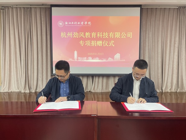 11月4日,杭州劲风教育科技有限公司专项捐赠仪式在钱塘校区教学科研综合楼举办。劲风教育总经理官翊文、公司高管代表,学校社合办主任胡吕平、电气学院院长闫树斌出席仪式。仪式由闫树斌主持。