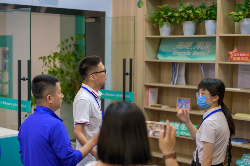 周妙荣一行实地踏看场馆设施、流线设计、比赛现场和志愿者换岗休整空间,了解志愿者团队和志愿者培训、配岗、上岗、换岗休整等情况,在具体服务点位、换岗休整空间与志愿者进行深入交流并送上暖心指导慰问。座谈会上,周妙荣感谢学校、场馆对赛事志愿服务工作的重视并为志愿者提供详实的系统培训和充足的保障激励,对校地合作、馆校对接、赛事志愿服务、党建团建联建、主题教育联学等工作和“小青荷”志愿者的表现给予充分肯定并提出具体指导要求,勉励永利“小青荷”志愿者团结奋斗、再接再厉,为本次赛事和后续场馆亚运会、亚残运会3个项目的成功举办贡献青春力量!