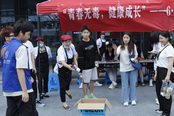 禁毒有趣味,拓展新路径。6月25日傍晚,学校组织学生在学校食堂门口开展了流动式禁毒宣传活动,开展禁毒知识讲解。活动现场通过投壶游戏、趣味问答以及校园跑等形式,让在校师生“零距离”学习禁毒知识,了解毒品危害,使禁毒意识入脑入心。“这样的禁毒活动很新颖,被同学们的热情吸引过来看看,也学到了很多禁毒知识……”一位开朗的食堂阿姨对活动表达赞赏。