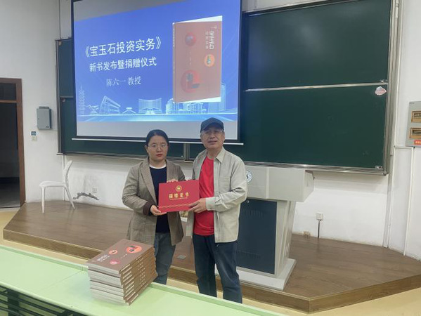 无独有偶,在夏为老师捐赠书籍之后的两天,来自浙江经济职业技术学院的玉石雕刻师、九三学社浙江省第六届、第七届、第八届委员会委员陈六一教授,为永利师生讲授《宝玉石鉴赏》课程时,向图书馆捐赠了由他本人撰写并出版的《宝玉石投资实务》一书共十册。图书馆相关负责人表示将会保管好、爱护好、利用好这些捐赠的书籍,使他们真正成为师生的精神食粮。