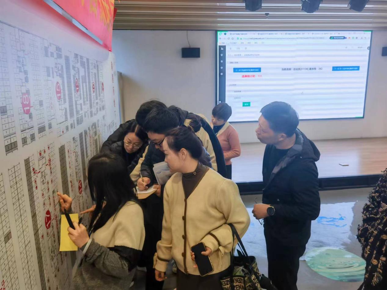 选房期间,校党政主要领导、申购领导小组组长统筹指挥,学校人事处、总务处、纪检监察室、工会、现教中心、保卫处等部门密切配合,共同落实好这项民生实事工程。选房现场,每天上百名教职工及家属到场选房,工作人员团结协作、各司其职,严格执行选房工作纪律,保障选房过程顺畅。选房家庭在综合楼105报告厅通过大屏幕实时查看房源情况,学校纪检监察室全程监督。
