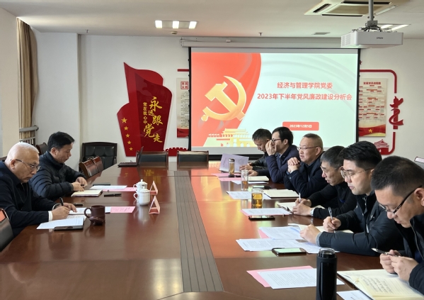 为深入学习贯彻习近平新时代中国特色社会主义思想和党的二十大精神,进一步强化学院党委班子责任担当意识,促进政治核心作用发挥,12月5日上午,经管学院召开2023年度下半年党风廉政建设分析会,全面总结年度党风廉政建设工作,重点围绕下半年党风廉政建设情况深入分析研究并提出下一步工作举措。副校长姜翰照、校纪委副书记陈国法出席指导。学院党政班子成员参加。会议由经管学院党委书记严晓焰主持。