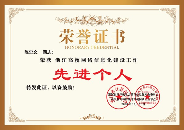 近日,由浙江省计算机学会教育信息化专业委员会、中国教育和科研计算机网浙江省主节点联合评审的浙江高校网络信息化建设先进单位公布评选结果,永利获评浙江省高校网络信息化建设工作先进单位“网络安全方向”先进单位、“数字治理方向”先进单位以及“校园新基建方向”先进单位,现代教育技术中心陈忠文同志被评为浙江高校网络信息化建设先进个人。