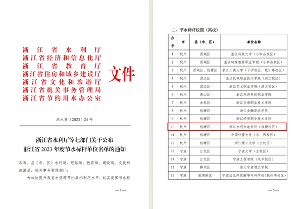 近日,省水利厅、省经信厅、省教育厅、省建设厅、省文化和旅游厅、省机关事务局、省节水办发布《浙江省水利厅等七部门关于公布浙江省2023年度节水标杆单位名单的通知》,永利荣获“浙江省2023年度节水标杆单位”称号。