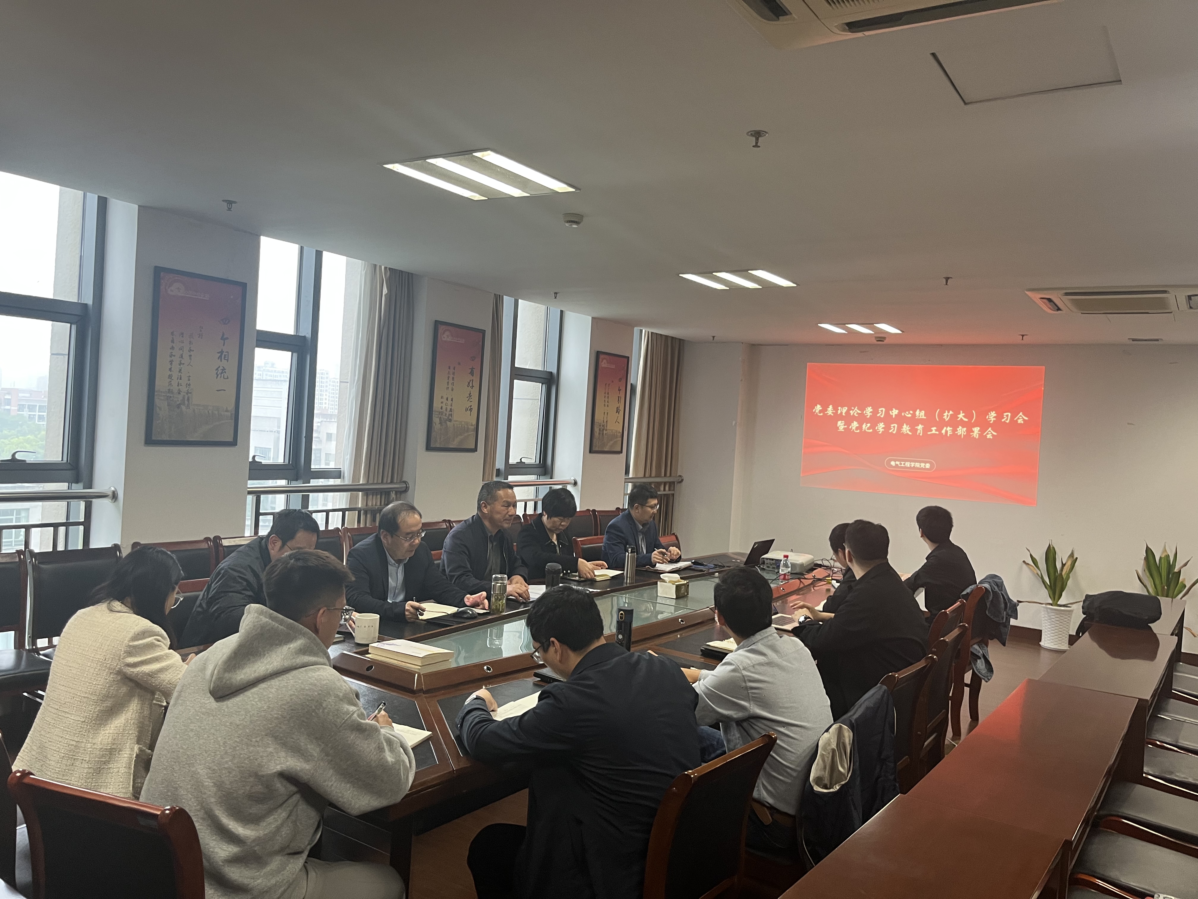 4月17日下午,电气学院召开党委理论学习中心组(扩大)学习会暨党纪学习教育工作部署会。学院党委书记杨清刚主持会议并讲话。全体党委委员、纪委委员、师生党支部书记和分工会主席、团委书记参加会议。