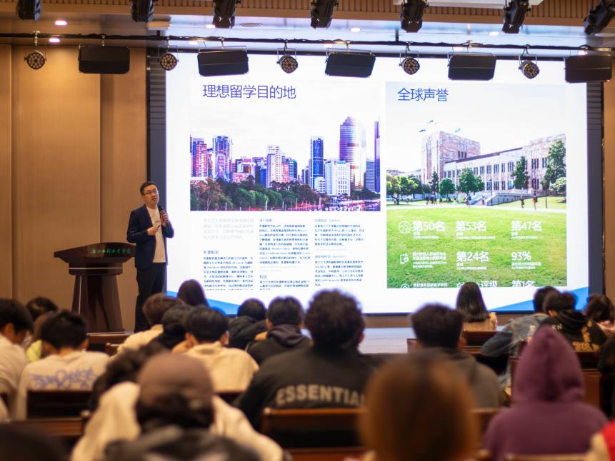 澳大利亚昆士兰大学、马来西亚理工大学、澳门科技大学、新加坡南洋理工大学等项目负责老师及澳大利亚查尔斯达尔文大学校方代表先后对各个院校的项目特色、课程安排、报名方式等内容进行了详细解读,并分享了往期优秀交流生的案例。